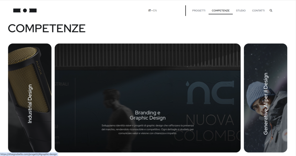 Il sito Disegnobello si presenta come la vetrina digitale di uno studio di industrial design capace di coniugare estetica, funzionalità e innovazione. Con un approccio semplice e diretto, il portale introduce da subito la sua missione: “Dall’Idea al Design”, ovvero trasformare concetti e visioni in prodotti reali e significativi grazie all’unione di creatività, tecnologia e strategia.
