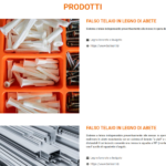 La struttura del sito è semplice e orientata alla navigazione pratica: Menu principale con sezioni come Chi siamo, Il nostro team, Prodotti, I nostri clienti e Social; Contenuti visuali che mostrano esempi di materiali, soluzioni tecniche o immagini correlate ai prodotti; Moduli di contatto e riferimenti diretti per comunicare con l’azienda (numero di telefono, email, richiesta di appuntamento). Questa struttura indica che fin dall’inizio l’obiettivo è stato quello di favorire un contatto rapido con l’utente e fornire informazioni utili in pochi passaggi.